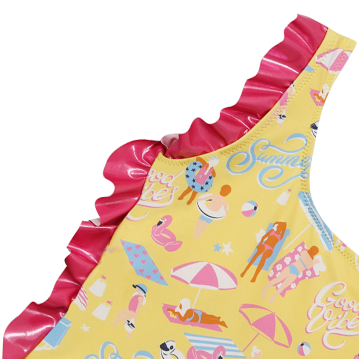 Conçu avec un tissu sans compromis de haute qualité, pour un toucher extrêmement doux et agréable. Un double volants scintillant qui longe les bretelles pour une sensation de légéreté. Parfait pour une baignade à la plage ou un plouf à la piscine.
