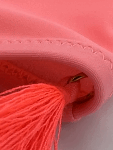 Un accessoire qui apporte un atout unique à ce maillot de bain, une guirlande de pompons cousue main.