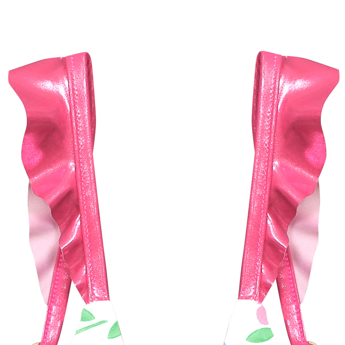Ce bikini deux pièces se distingue par son imprimé estival et ses volants irisés qui apportent une touche lumineuse. Sa coupe triangle et ses liens ajustables garantissent un maintien idéal tout en assurant un confort absolu. Confectionné en 84 % de polyamide recyclé et 16 % d’élasthanne pour l’imprimé, avec des détails irisés en 78 % de micro-polyester et 22 % d’élasthanne, il allie style et liberté de mouvement.