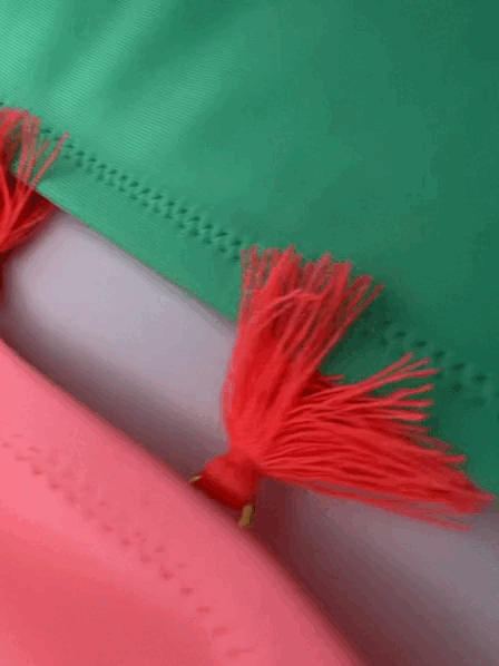 Un accessoire qui apporte un atout unique à ce maillot de bain, une guirlande de pompons cousue main.