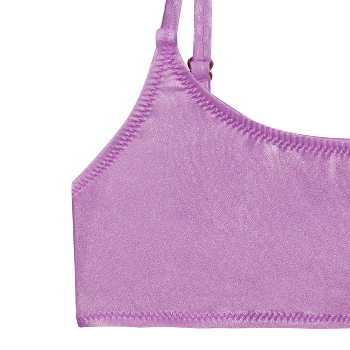 Ce bikini deux pièces associe un haut droit à fines bretelles réglables et un bas coordonné à la coupe classique. Sa matière lisse légèrement brillante met en valeur une teinte orchidée douce et estivale. Confectionné à partir de 78 % de micro polyester et 22 % d’élasthanne, ce modèle offre un confort optimal et une bonne résistance au sel comme au chlore. Une silhouette simple et colorée, pensée pour l’été.