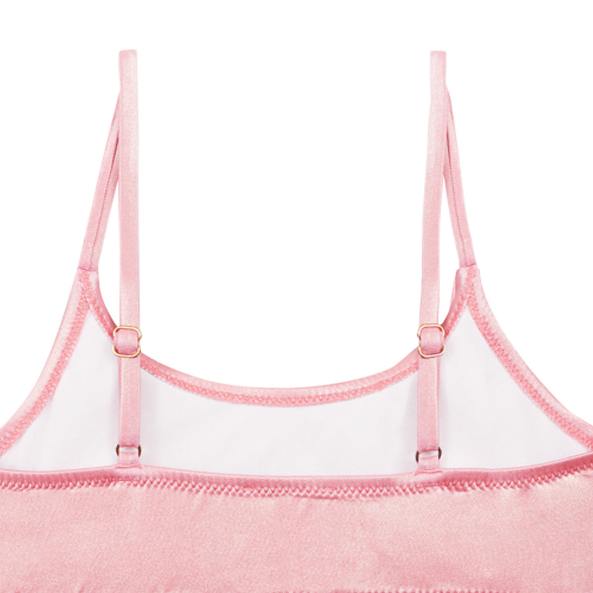 Ce bikini deux pièces se compose d’un haut droit à fines bretelles réglables et d’un bas assorti à la coupe classique. Sa matière légèrement brillante dévoile un rose poudré doux et lumineux. Confectionné à partir de 78 % de micro polyester et 22 % d’élasthanne, ce modèle offre confort, souplesse et résistance. Une silhouette simple et équilibrée, pensée pour les baignades de l’été.