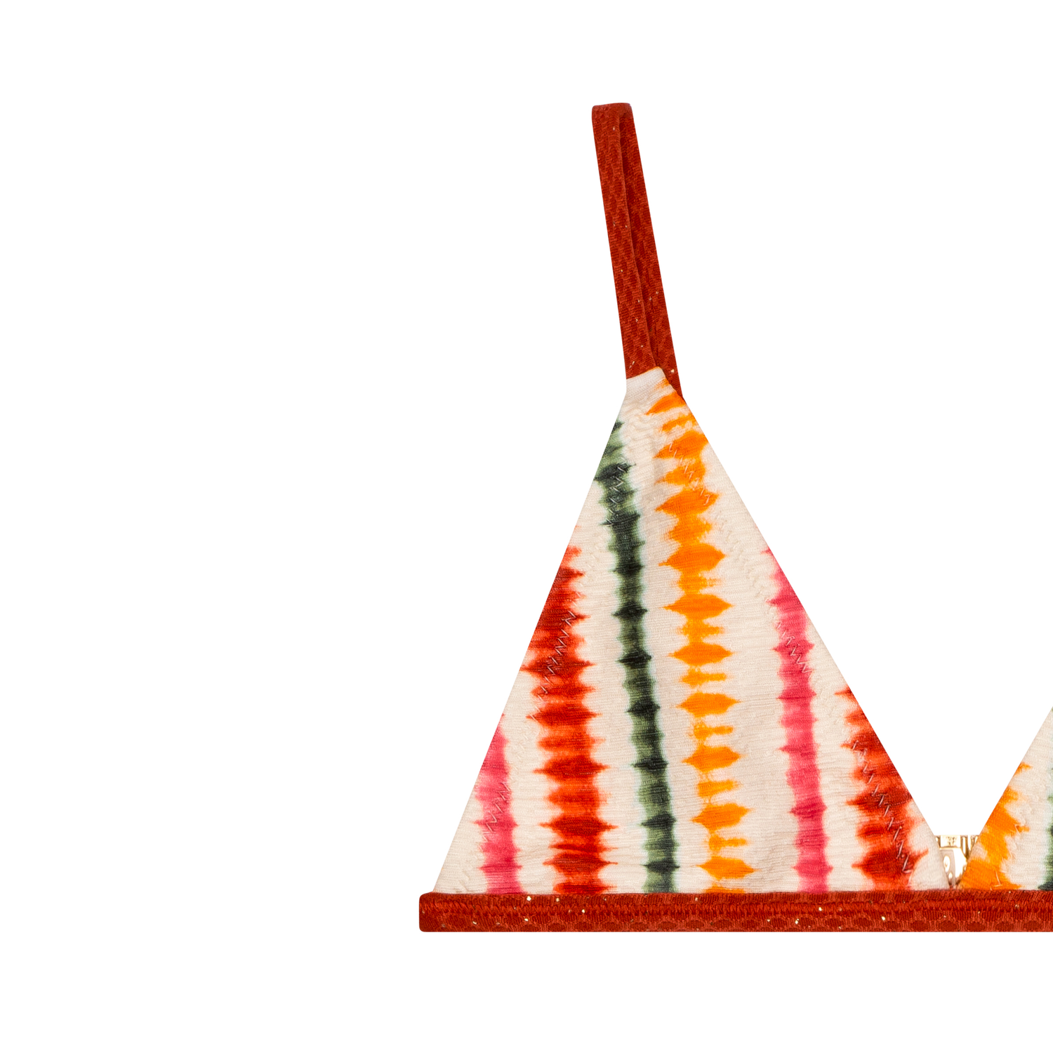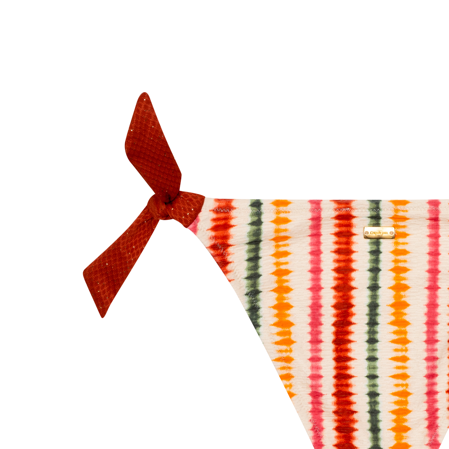 Confectionné en 90 % polyester recyclé (ECOYARN) et 10 % élasthanne, ce modèle deux pièces met à l'honneur une silhouette en triangle, sublimée par des liens à nouer sur les côtés. Pensé pour accompagner les jeunes filles tout au long de l’été, il associe confort, liberté de mouvement et esthétique assumée.